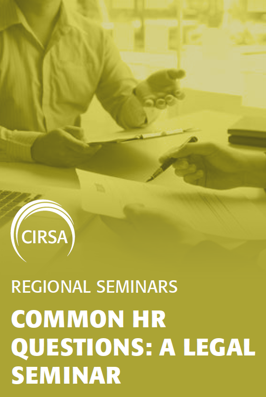 This seminar is designed for managers, supervisors, HR staff, and other professionals seeking practical guidance on key employment law topics of interest to CIRSA members. The session emphasizes best practices that support legal compliance and help reduce organizational risk. Presenters Sam Light, CIRSA’s Deputy Executive Director/General Counsel, and Nick Cotton-Baez, CIRSA Associate General Counsel, will address common employment-related questions received from members, including topics such as FMLA, ADA, and employee leave, discrimination and harassment complaints, wage and hour compliance, at-will employment, and performance management and documentation.